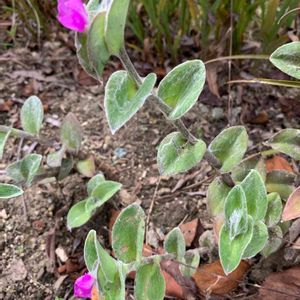 会社の近くの公園にて④ トラディスカンチア・シラモンタナ(白絹姫) ツユクサ科トラディスカンチア属 白い絹をフンワリまとったような葉っぱ🌿に可愛い紫のお花が咲いていました