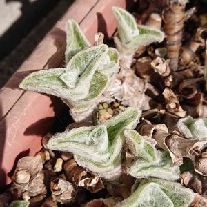 ふわふわの綿毛をまとっています"((∩´o`∩))" 昨年はずっと外にいたので、寒くなると葉っぱは枯れてました。 暖かくなると芽を出しましたが、花は付きませんでした😞 なので一旦枯れた後、葉っぱと茎をカットして室内で育てる事にしました。 芽が出て、やっとここまで葉っぱを付けました🤗 今年は、花を咲かせてくれるかな❓