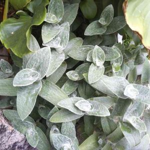 これは多肉植物でしょうか❓触ったらモフモフしてました🎵色も涼しげで好きです💝 赤のアマリリスの下に咲いてました😊 ご近所さん
