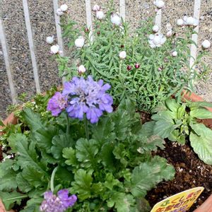 ハナカンザシの寄せ植え造りました😊 ハナカンザシ スカビオサ アリッサム 種まきビオラ 寒さに強いとラベルには😆 負けないで咲いてね