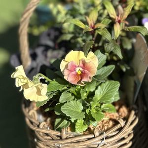 おはようございます😺 ピンク籠🧺の寄せ植えをしてみました🤗🩷 タカザワファームさんの『ジーデコ』と『斑入りポリゴナム』『オレガノ リバノティカム』の3株でシンプル植えしましたよ🤗🤍🩷 オレガノもピンクのお花が咲くようです🤭💕