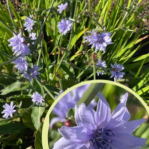 朝🐕散歩 家庭菜園の脇に チコリ 別名 キクニガナ ヨーロッパ原産の野菜(ハーブ) 花は朝開いてお昼頃には閉じてしまいます