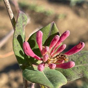朝🐕散歩 ツキヌキニンドウ コレ↑今朝です、、、 こちら地方−4.6°だったのに まだ咲いている〜ビックリ‼️ 写真見てギョ❗️としたのですが 真ん中に何かいませんか? まさか?マサカ?何かの幼虫? (こんなに寒いのにまだいるの?) キャーーーーーー😱 拡大して見る勇気がない小心者です
