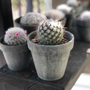 STAY HOMEになる前にIKEAで買ったミニサボテン🌵 DAISOで4個100円の素焼きの2号鉢に植替えました😊 教えていただいた武蔵野以外名前はわかりません😓