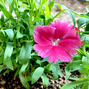 歩道脇の花壇に咲いていましたセキチクの花☺️ (Googleレンズでセキチクと出ました🙇) 雨あがりでしたが、元気に綺麗に鮮やかに咲いていました😄 2023/01/14(土曜日)にスマホで撮影しました☺️