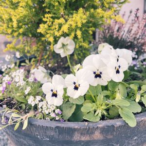 やっぱり白のビオラちゃん可愛い♡ アリッサムは種から育てたょ(^^)