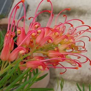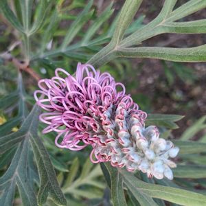グレビレア ヤマモガシ科グレビレア属 ビルの植木で植栽されてました。 くるくる🌀巻いてるのは雄しべだそうです。
