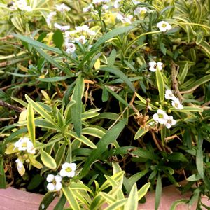 花が咲かない方のシルバープリペットです。もうプリペットになってもいいかなーと、先祖返りした葉をそのままにしていましたが、シルバープリペットだったことを思い出してくれたようです(^。^) 先祖返りした葉は切りもどすしかないと思っていたのですが、こんな風にもなるんですね。
