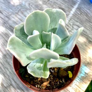 トップシータービーをやめようとするトップシータービーさん👀 普通の形質になった葉を取っていかないと普通のルンヨニーにどんどん近づく、というウワサですがそれはそれで構わないかな😌 Echeveria runyonii 'Topsy Turvy' ユキノシタ目 Saxifragales ベンケイソウ科 Crassulaceae エケベリア属 Echeveria