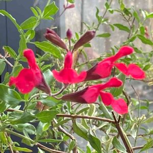 こんにちは😊 【チェリーセージ】可愛く咲いてて❤️ いい香り٩(˘ ㅅ˘)۶クンクン♡ 斑入りの葉だったけど数年経ったら先祖返りでほとんど緑になっちゃった😅