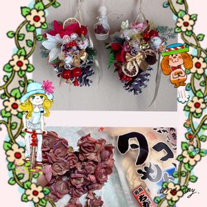 おはようございます😋 11月23日 🏷エンジェル祭りに参加しま〜す💖 ⬇️minto ちゃんから可愛いスヨンちゃんとタコせん🐙が届きました💖 とっても可愛いくって小さなバラの花束みたい💖 ズッキュ〜ン💘💘💘💘💘 minto ちゃんありがとう💖😊 ⬆️一年ほど前にいちごちゃんに大きな松ぼっくりを貰ってて、金と銀だけの色付けしていたんだけど、100均で色々買ってクリスマスバージョンにアレンジしてみたよ💖 真ん中に可愛いエンジェルちゃんがスヨンを籠に入れて運んでるでしょ😋💕 みえるかなぁ〜💘 ズッキュ〜ン💘💘💘💘💘