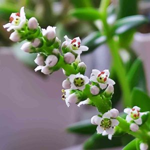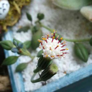 おはようございます☀ 🌱多肉の花🌱 白い花に赤いしべが可愛いです😌 名前は火祭りかなぁ~😊