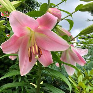 ユリ カサブランカかしら🤔 優しいピンク色で綺麗でした🥰 とっても背が高くて見上げるようでした❣️ ユリってこんなに伸びるの🙀
