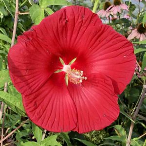 アメリカフヨウでしょうか😅 とっても大きなお花が咲いてました❤️ 夏の陽射しに映えてます🥰 よく見たらお肌にちょっと傷が🙀