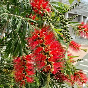 ブラシの木 咲き出しました🥰蕾も沢山見えてます❤️ 楽しいお花ですね🎶