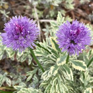 チャイブ ハーブ花壇で素敵に咲いてました🥰 下の葉っぱは別のハーブです🌿 名前を見て来たけど忘れました😆💦