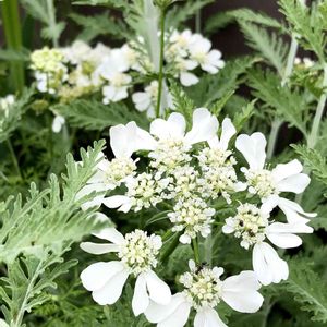 オルレア 少し前のpicですが、ギザギザのシルバーぽい葉(別のお花)の間から咲いてて🥰 自然のアレンジも美しいな💕と📱✨