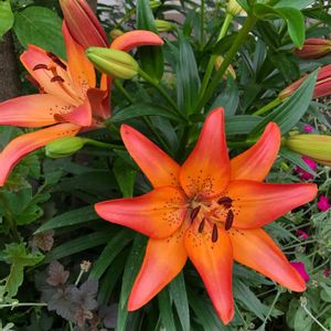 ユリ 何ユリですかね🤔スカシユリ⁉︎ 渋めのオレンジ色で立派に咲いてました🥰 蕾もまだあるので楽しみです🧡