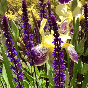 サルビア ネモローサ 何度も見る度に撮ってるんだけど💜 見たままの美しさが出ないです😆 後ろのアイリスとのコラボも、色合いが似てて良いかも🥰雰囲気で見て下さい🤣🤣💜