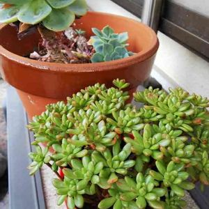 おはようございます😃 昨日の花木センターにて狩った子その② エケベリアのモラニーちゃん♡ もう夏は狩らないと決めたのに、このラメっぽい肌質と赤い縁取りにヤラレタ😅 もうちょっと鉢が小さすぎるよね… でも秋まで待った方がいいのかな…?💦