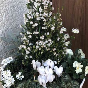 🌿白の寄せ植え🌿 八重咲きジュリアンの菜々ちゃん 名前が可愛い過ぎて、色とは違うイメージですね😅 これを見つけて寄せ植えを作りたいな~と思って合う色を考えましたが、思い付かずに結局白のお花で合わせてしまいました。 冒険できない性格なんです💦 八重咲きジュリアン 菜々ちゃん 二株 ラナンキュラス コデマリ 水仙 ペーパーホワイト