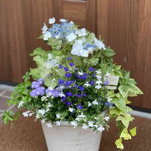 💚アジサイスフレの寄せ植え💚 スフレが咲きました。 控え目で涼しげでいいな🎶 アゲラタムとロベリアの位置、植えた時は間違ったかな〜と思いましたが、案外アゲラタムが伸びるのが遅くて良い感じ❣️ 『青い紫陽花前線2022』 撮影回数 4回目 撮影場所 千葉県柏市自宅庭 状態 開花