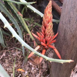 木立アロエ、どの様な経緯でここに生えているのか分かりませんが、たまにオレンジ色の花が咲いていてキレイです。 カッコイイですが、大きくなるし成長が早いので、うちでは育てられないな。