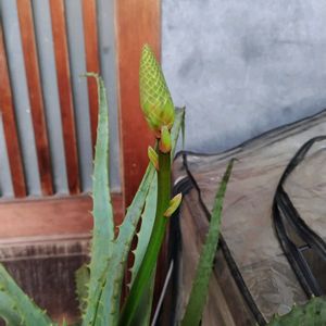 アラレ❄️が降る中 アロエ 咲きま〜〜〜す‼️