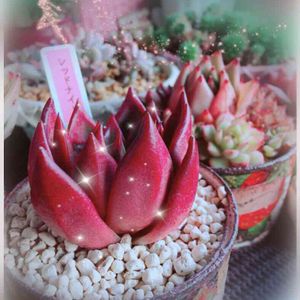 多肉ちゃん見に来て頂いた多肉歴のある方からこんなに素敵な寄せ植え頂きました❤️ 私にはできない技だわ~🍒 お庭にあったもので作ったと言われてたので…近々訪問のお約束させて頂きました🥰 楽しみが増える~゚・*:.。❁ 今日も一日心地好く💞