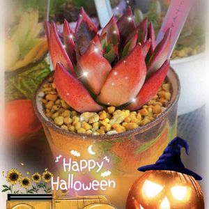 ハロウィン🎃 てんてんみやちゃんのリメ鉢がハロウィンにとても似合います❤️ 仕立て直しのチマチマ入れて3鉢並びました🪴
