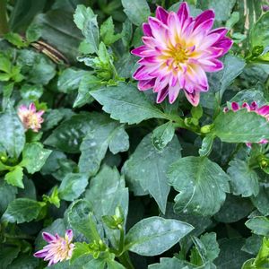 ショック‼︎ ミニダリアにうどんこ病と思われる、白色粉?が。。。 ここ最近の急成長で、密集し始めた所に雨が。。。ガックリです。 隣の大きなダリアもダメージ。 これ以上広がないように、抜いたり、薬撒いたり、大忙し。 薬のせいか、葉っぱのせいか腕が痛痒い トカゲが写り込んでる