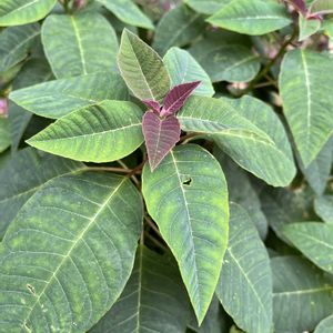 ポインセチア プリンセチア クリスマスマウス 最後方のポインセチアは3年目です✨秋に季節はずれの雹(ひょう)に降られて葉がボロボロ・ハゲハゲになりました😢 11月から室内管理してます💖