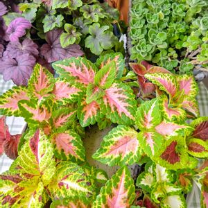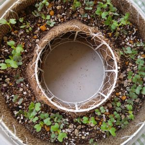 おはようございます😊 ベランダのリーフ植物たち。 コリウスのリース。今年は種蒔きっこ🌱。ばら蒔きしたコリウス、ポットあげした残りの小さな苗を救済(5/26)。リース台に植えました。 これ以上、大きくならないで🙏。 (2025/7/1撮影)