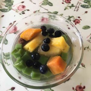 "レトルトぜんざい' を、寒天で固めて 水ようかんにしました😋👍 ☕🍮