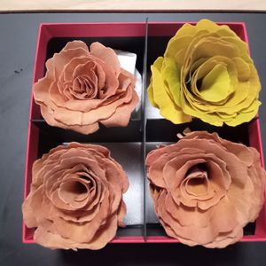 イチョウの葉でバラ 去年はドライになり 変身。 黄色が今年のです。