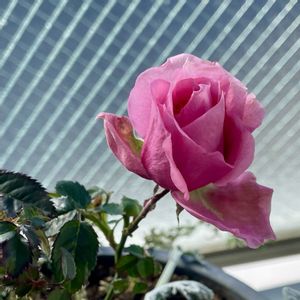 アールグレイの開花が始まりました。可愛いのですが、折れやすいのが難点。連日の強風で風避け避難中です。