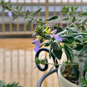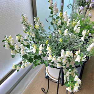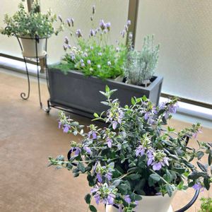 ルーフから避難中のツリージャーマンダーと。ラベンダーブルーのラベンターと色味が似ていて、ここに置いても合いそう