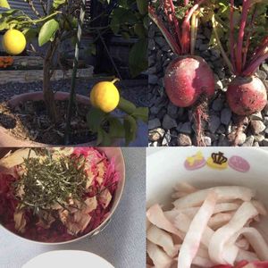 レモン🍋🍋・大根収穫😊 紅くるりって葉の軸や葉脈まで 赤くてキレイ✨ サラダ・おろし・甘酢漬けに