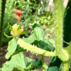 白キュウリの花の後ろ姿。 我が家は豪雪地帯ですので、年の半分は雪に覆われています。 家庭菜園も半年しかできませんが短い期間だからこそ楽しんで、無農薬でありがたくいただいています。
