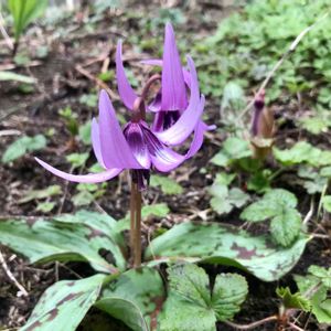 カタクリが咲きました。 タネをつけてしまうと株がふとらないので、ウチではエディブルフラワーとして食べてます。