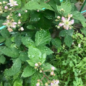 おはようございます。 今日も朝から霧雨です。 果樹シリーズ、スタートします。 第1回目はブラックベリー。 ピンクの花が咲き始めました。 3年前に野ネズミに株元を食い荒らされダメになりかけましたが、 復活しました。 今年は果実が食べられそうです。