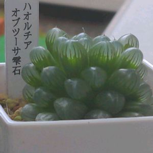 多肉植物のハオルチアにハマった最初の品種、オブツーサ雫石です。窓の透明感がたまらない。