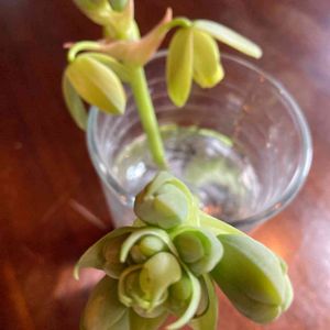 アルブカ^_^ 3輪目をカットしました。(手前) 奥で2輪目が花咲いてます。蕾でカットしても咲いてくれるのですね。
