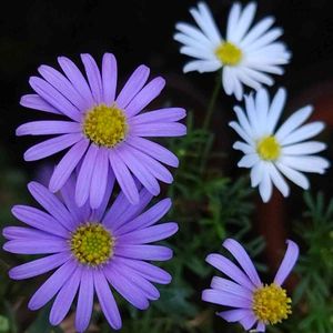 暑さに強い植物 ブラキカム 3月頃からいまだに、咲いてくれてます。 💕💕💕 同じ苗から3cm程の紫色の可愛い花 白い花も 咲いてる この子は終りに近いので白色に !