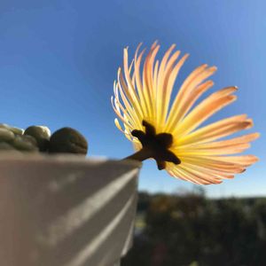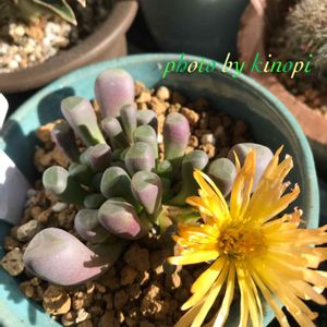 おはようございます〰️🍄 今日は春っぽい(ღ˘⌣˘ღ) メセン多肉植物 フエネストリア(五十鈴玉) 黄色いお花が咲きました\(^o^)/ 夕方にはしぼんでしまうのでなかなか見られない!(2/12日撮影)