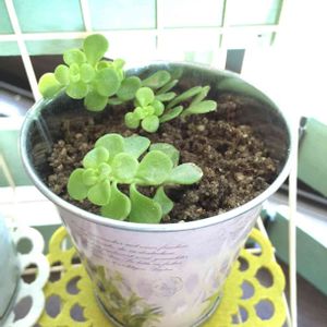 黄金丸葉万年草、こんな色でいいの? 枯れてない??(@_@)室内が基本? 周りの鹿沼土と大差ない色😳