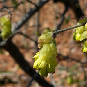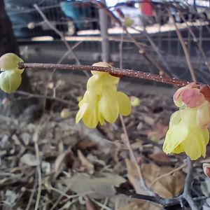 💛ヒュウガミズキ💛 マンサク科トサミズキ属 3/18介護施設の庭にて 透き通るようなレモンイエローの小さなお花、咲き始めました💛💛 ①②③下向きにうつむいて咲く姿は、地味だけど可愛らしい🥰 花言葉「思いやり」「信頼」「神秘」