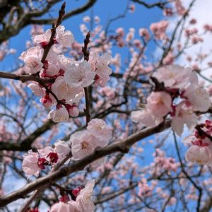 今日の散歩🚶 自宅前の公園から荒川🚶 アンズ、ヒュウガミズキ ソウシュンザクラ など咲いてました🌸 いよいよ春到来です🌸