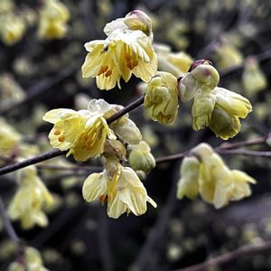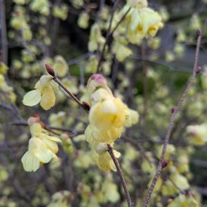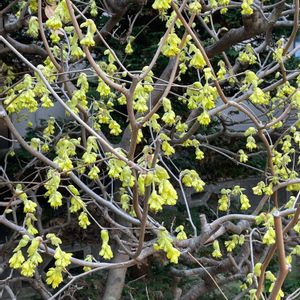 薄曇りだけれど、風が弱まりました🎵 雨と寒さでたった2日ほど庭パトしていない内に、庭に色が増えてきました✨ 今日は黄色い花を📸 1 一昨年お迎えしたヒュウガミズキが1つだけ開花💛 優しい🍋色がかわいいです。 まだこの花の他には花芽はないのだけど・・・私、変な時期に切っちゃったかな😅 2 硬い蕾が綻んできたサンシュユ。 小さな花が玉になって咲きます🟡 3 北側通路の植えっぱなし放置の面々。 ティタティタに囲まれたクリロー2世。 ティタティタより低い位置に花があるので撮りにくいわ😂 後ろのワサワサはセリ・フラミンゴです。 脇にあるスノードロップが遅まきながら葉っぱを伸ばしてきています😆