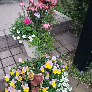 ファイアーヒースが大きく育ちました。アネモネやラナンキュラスはほぼ終わりですけどね😁 ビオラとアリッサム、ヒューケラ鉢はパンパン。